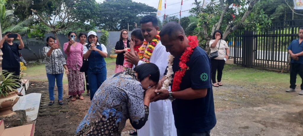 Tgl 14 Agustus Penjemputan Pastor RD. Yakobus L. Balia dalam Syukuran Misa Pertam Di Paroki Gereja katolik Santo Yoseph buli Halmahera Timur…